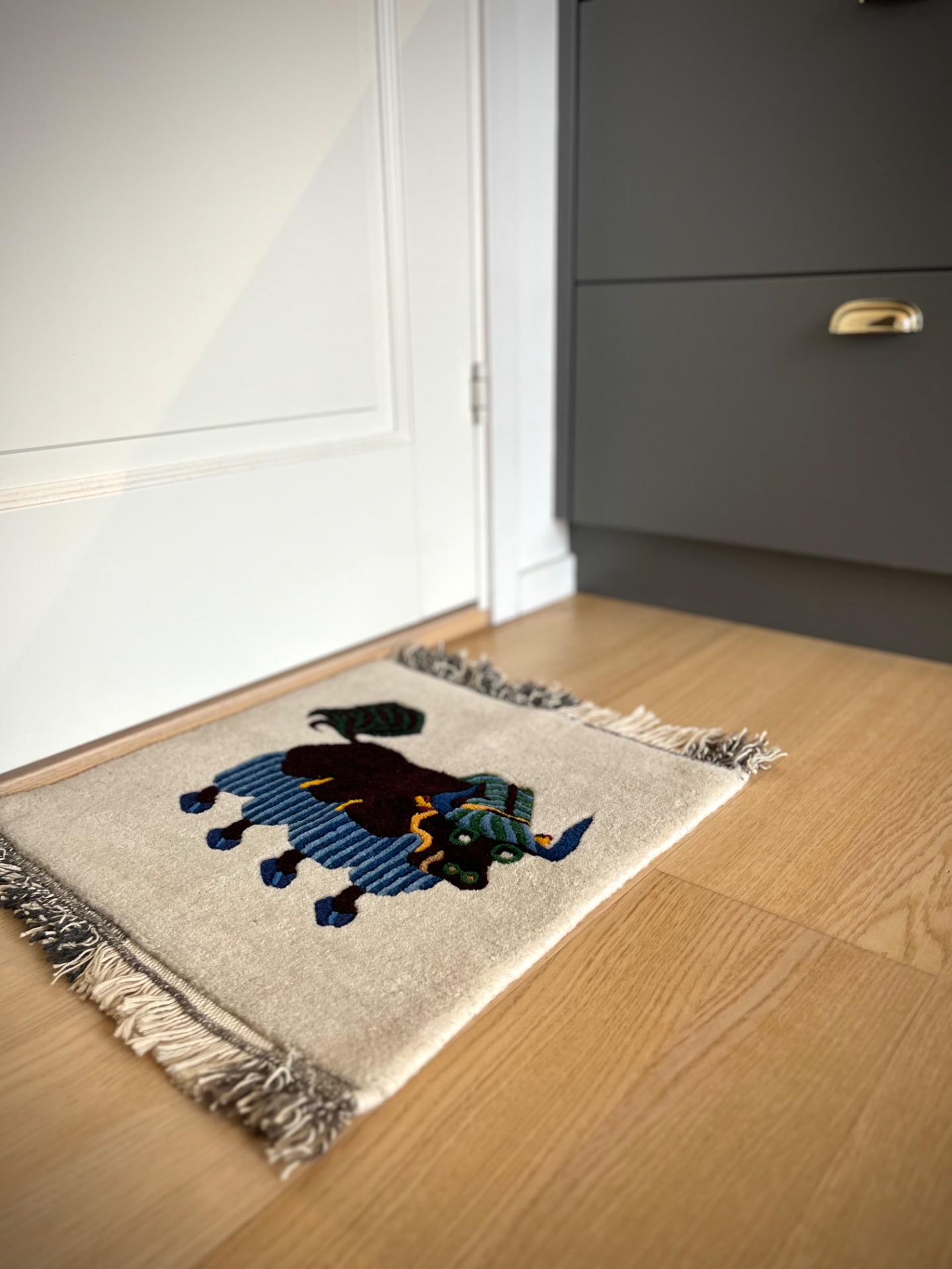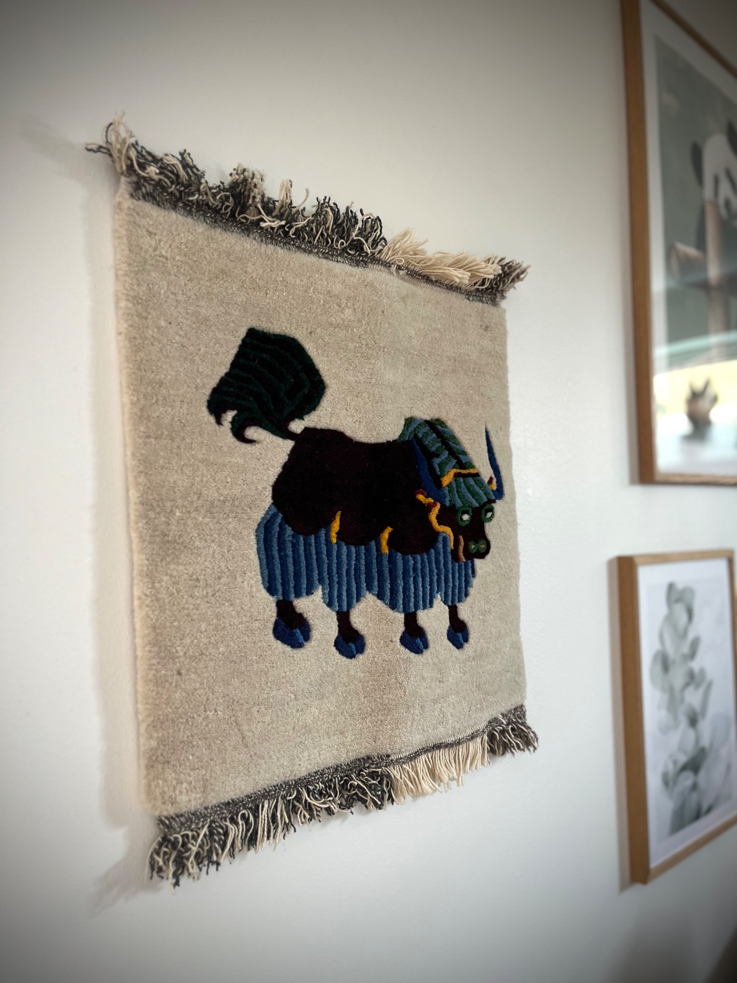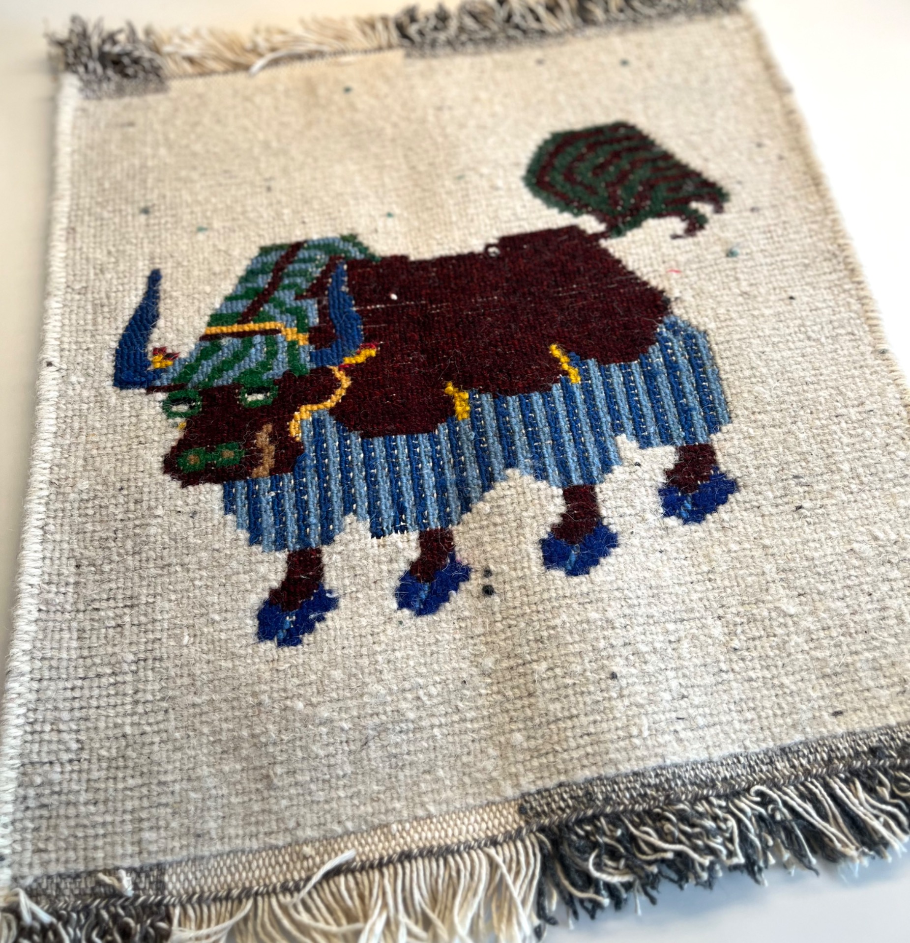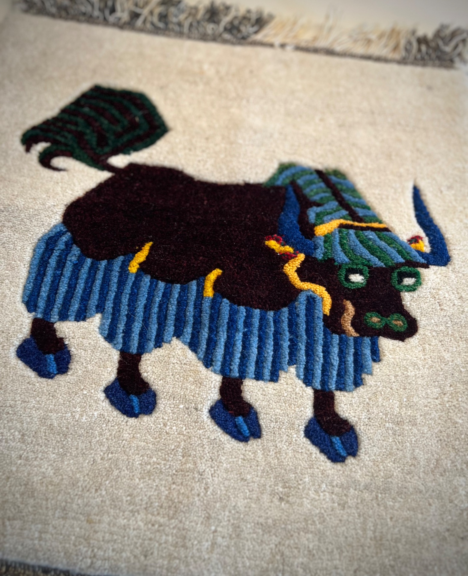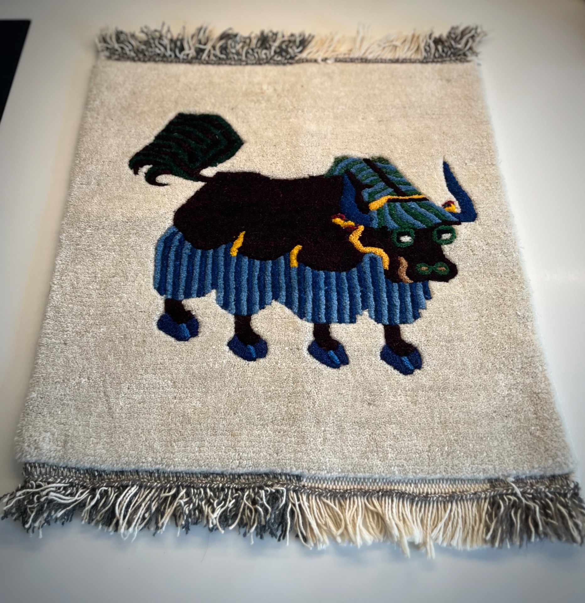 Handknuten tibetansk (meditations) matta motiv av en Jak.