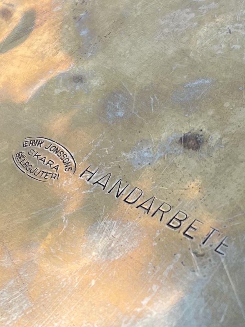 Mässingsbricka Erik Jonssons Gelbgjuteri, Skara