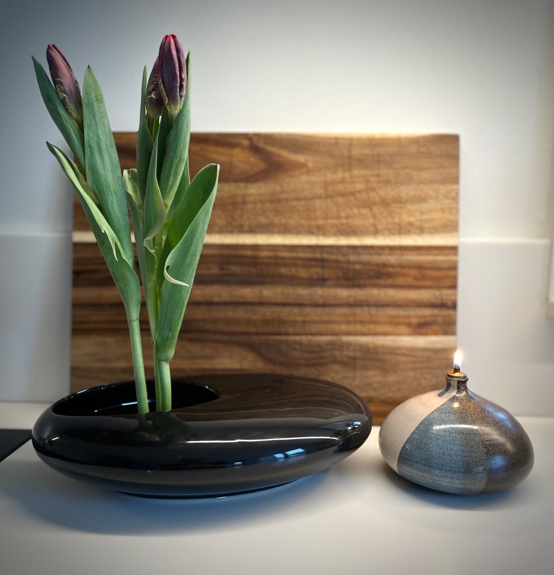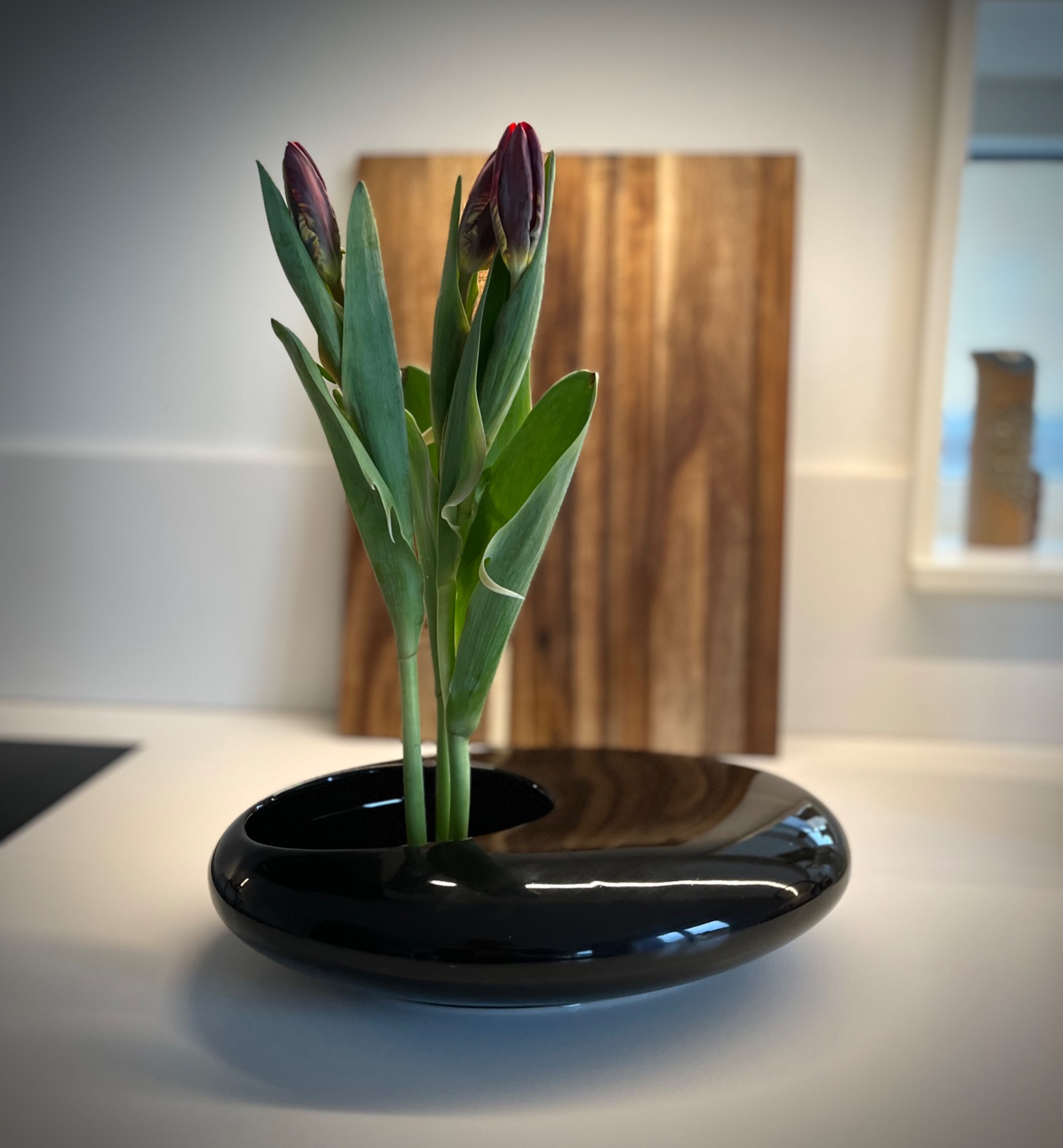 Svart ikebana/ låg vas