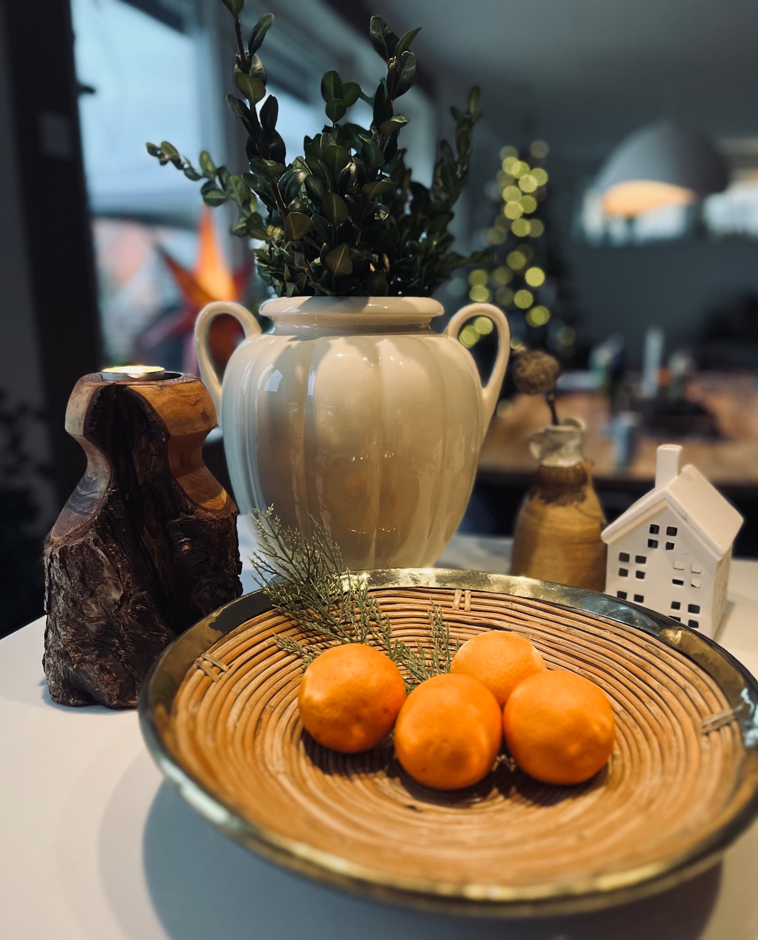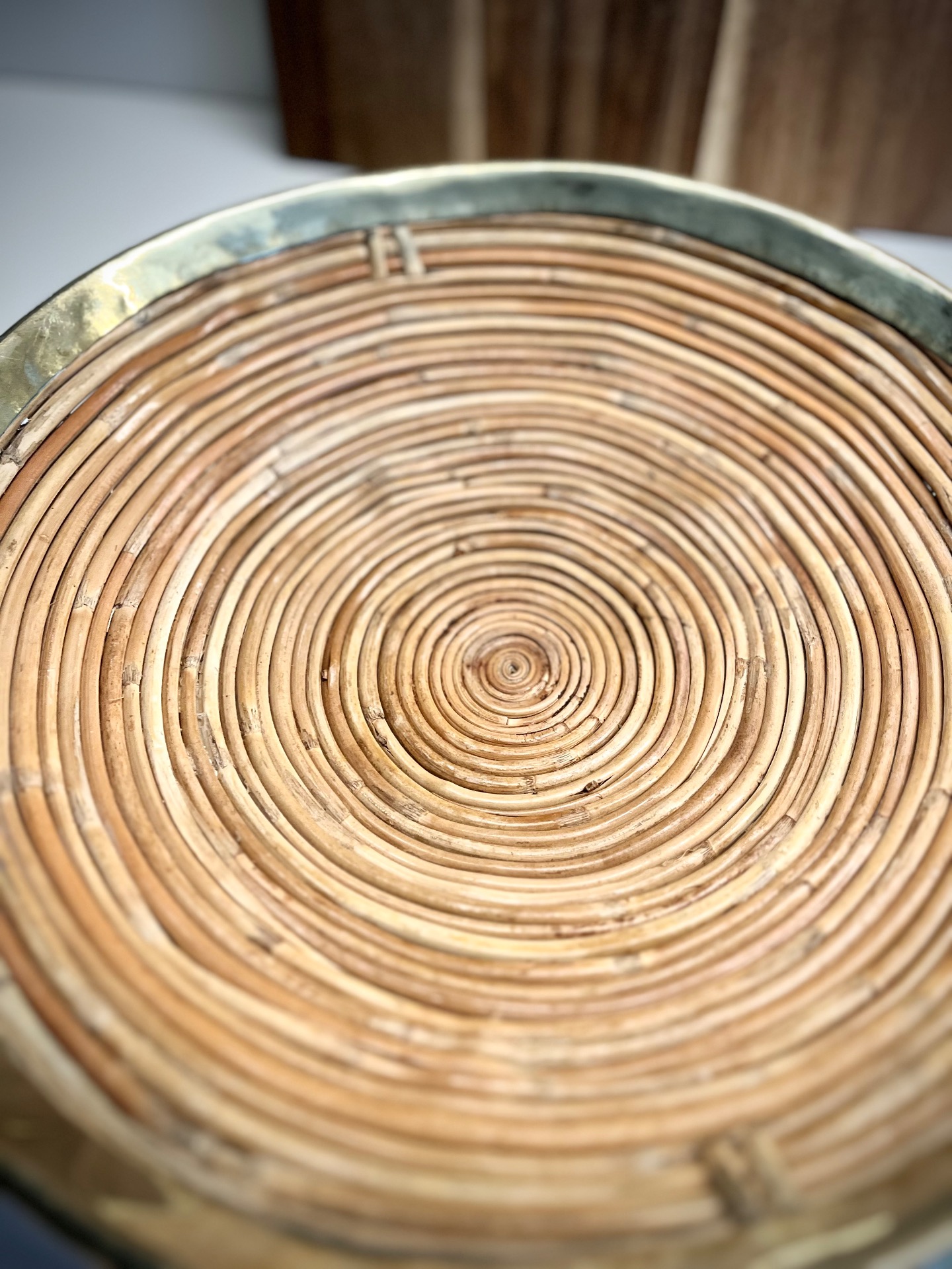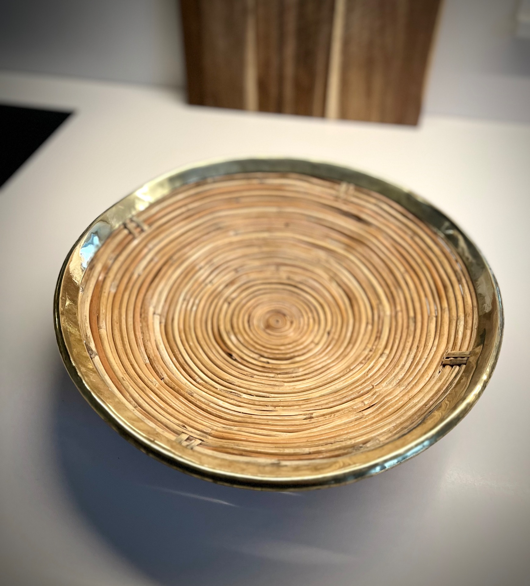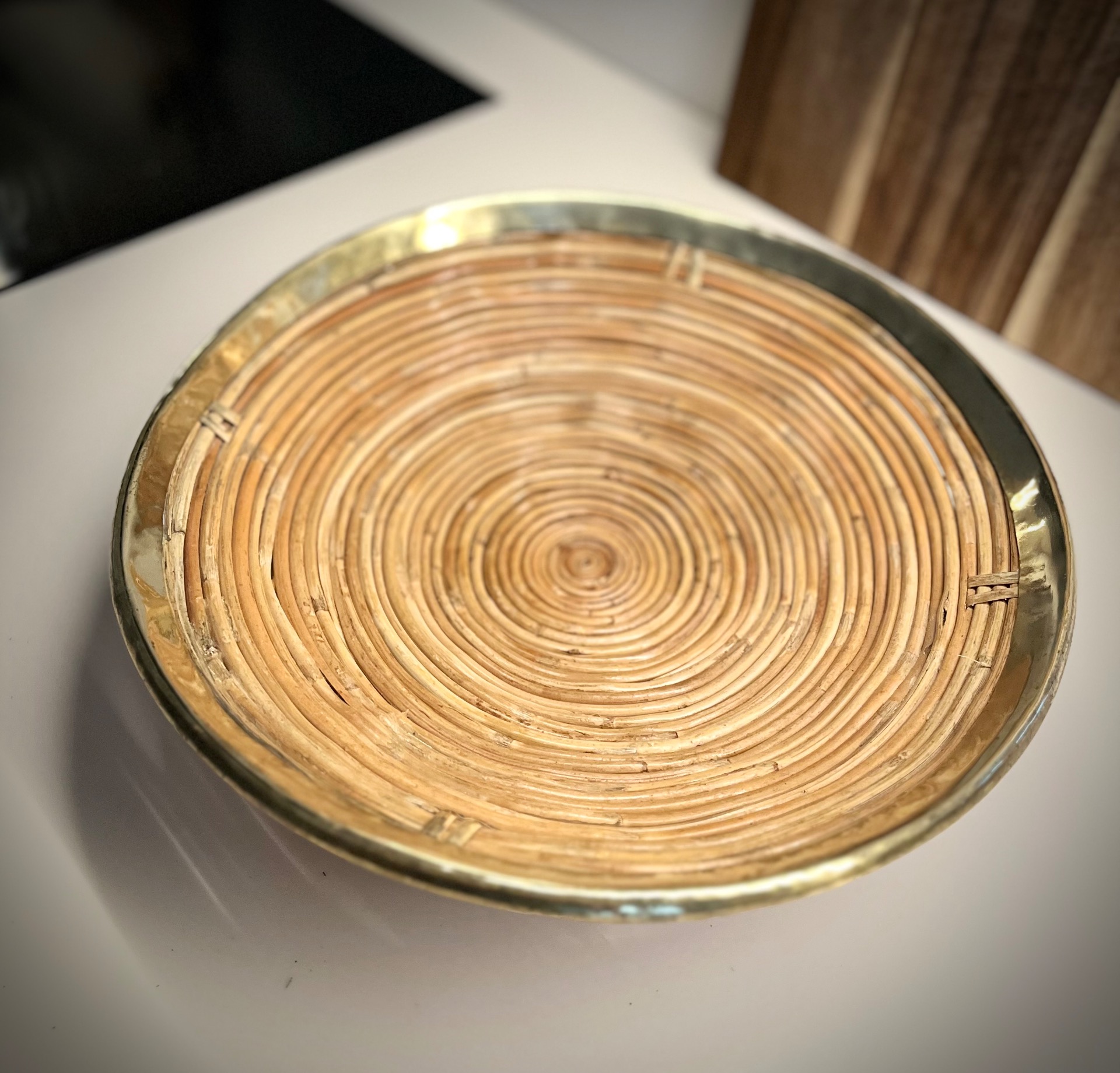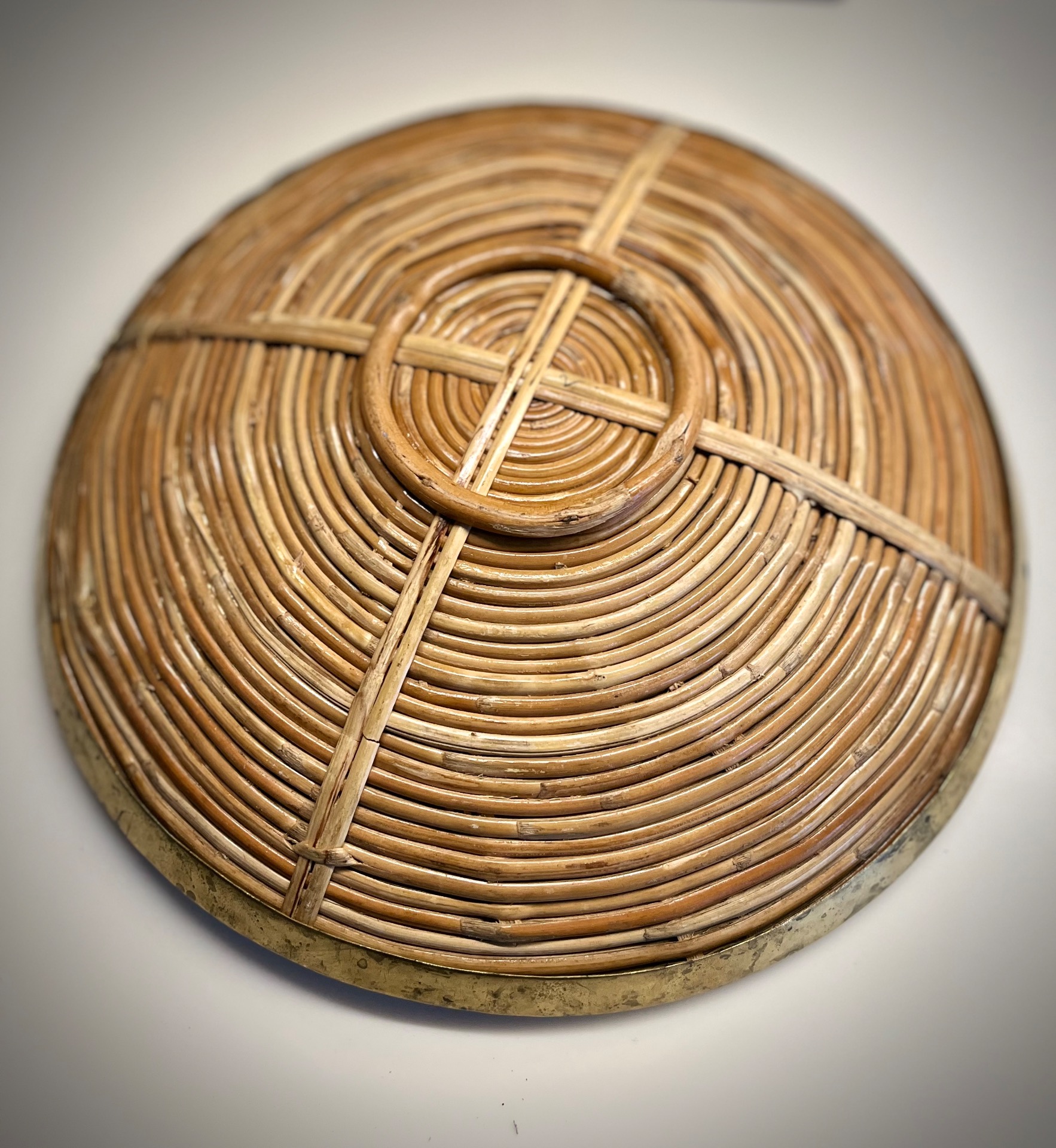 Vintage serveringsskål/korg i rotting och mässing, i stil med Gabriella Crespi.