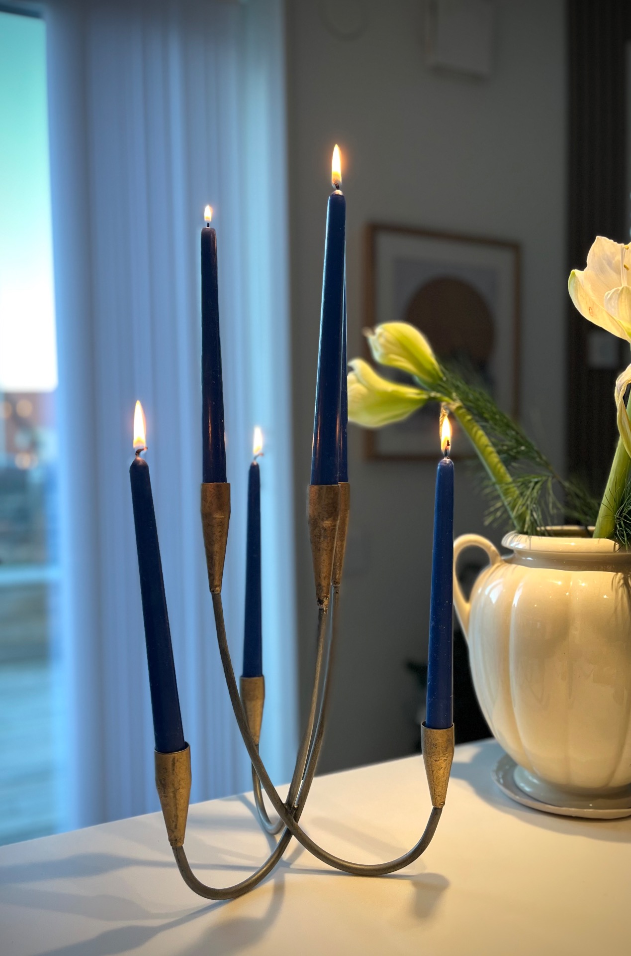 Vintage ljusstake/kandelaber i metall för 6 st kronljus.